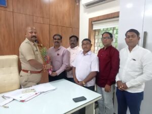 भदावती दि.4:- वरोरा भद्रावती:-महाराष्ट्र राज्य पत्रकार संघाच्या वतीने नव्याने पदभार स्वीकारलेल्या उपविभागीय पोलीस अधीक्षक संतोष बकाल यांचे उपविभागीय पोलीस कार्यालय वरोरा येथे सन्मानपूर्वक स्वागत करण्यात आले.