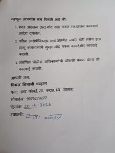 फिर्याद नोंदवण्यास नकार व अयोग्य वर्तन झाल्याचा दावा – चौकशीची मागणी ?