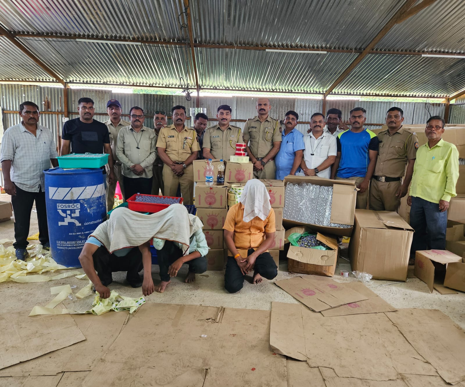 जळगाव राज्य उत्पादन शुल्क यांच्या आशीर्वादाने टॅंगो देशी दारूचा कारखाना सुरू! जिल्हा पोलीस अधीक्षक यांच्या मार्गदर्शनाखाली बना व दारू तयार करणाऱ्या कारखाना उद्ध्वस्तपोलीस निरीक्षक सचिन सानप यांना गोपनीय बातमीदाराकडून माहिती मिळाली की, पारोळा पोलीस स्टेशन हददीत एक बनावट देशी दारु टैंगो पंच कंपनीचा देशी दारुचा कारखाना आहे. सदरची मिळालेली माहितीवरुन मा. पोलीस अधीक्षक डॉ. महेश्वर रेडडी यांना माहिती अवगत करुन त्यांच्या मार्गदर्शनाखाली तसेच मा. अपर पोलीस अधीक्षक, चाळीसगांव श्रीमती कविता नेरकर पवार यांच्या सुचने प्रमाणे पारोळा पोलीस स्टेशन हददीतील बहादरपुर गावाच्या शिवारात असलेली बोरी नदीच्या किनारावर एक लोखंडी पत्राच्या शेड मध्ये बनावट अवैद्य देशी टॅगो पंच नावाचा कारखाना असल्याची खात्री झाल्यावरुन दोन शासकीय पंच यांना सोबत घेवून मा. उपविभागीय पोलीस अधिकारी श्री. विनायक बाजीराव कोते, पोलीस निरीक्षक सचिन सिताराम सानप, पोउपनि अमोल कचरु दुकळे, पोलीस हवालदार सुनिल कौतिक हटकर, महेश रामराव पाटील, डॉ. शरद तुकाराम पाटील, प्रविण शालीग्राम पाटील, पोलीस अंमलदार अनिल तुळशीदास राठोड, अजय महारु बाविस्कर, आकाश काडू माळी, विजय अशोक पाटील, शेखर देविदास साळुंखे, चालक पोह संजय लोटू पाटील, चालक पोह वेलचंद बाबुराव पवार अशांनी सदर बनावट देशी दारु असलेल्या ठिकाणी शितापीने कारवाई करण्यात आली आहे.