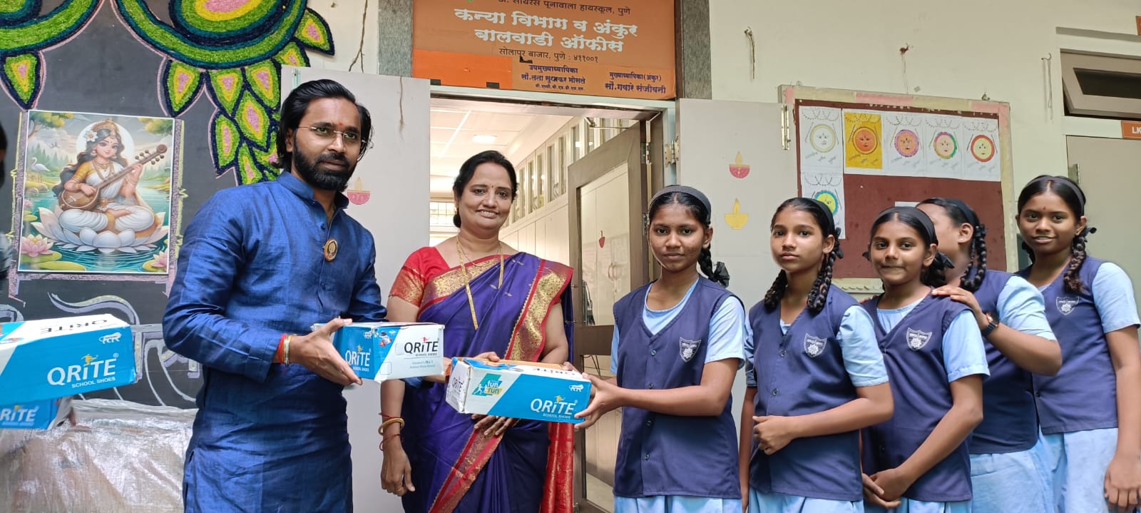 नवरात्र महोत्सव निमित्त पुणे कॅम्प येथील कॉन्व्हेंट स्ट्रीट मित्र मंडळ ट्रस्टच्या वतीने कॅम्प एज्युकेशन सोसायटी कन्या विभाग या शाळेतील गरजू विद्यार्थिनींना बूट वाटप करण्यात आले, यावेळी आयोजक कॉन्व्हेंट स्ट्रीट मित्र मंडळ ट्रस्टचे अध्यक्ष विशाल मोरे, विनायक राठोड, सुरज ठोकळ, प्रदीप शिंदे, राजू शेट्टी, तसेच शाळेतील शिक्षिका मीना साळुंखे, व सपकाळे मॅडम उपस्थित होते, दरवर्षी विविध ठिकाणी ट्रस्टच्या वतीने शालेय साहित्याचे वाटप करून सामाजिक बांधिलकी जपण्याचे प्रयत्न केले जात आहे अशी माहिती कॉन्व्हेंट स्ट्रीट मित्र मंडळ ट्रस्टचे अध्यक्ष विशाल मोरे यांनी सांगितले