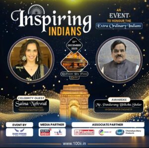 खडकवासला पाटबंधारे विभागाचे माजी कार्यकारी अभियंता, ज्येष्ठ सामाजिक कार्यकर्ता, (इंजिनियर) पांडुरंग शेलार यांना नुकताच इन्सपायरिंग इंडियन पुरस्कार जाहीर झाला आहे,
