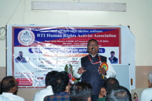प्रमुख पाहुणे श्री. आनंद भंडारे यांनी माहिती अधिकाराद्वारे (RTI) पालिका अधिकाऱ्यांकडून माहिती मिळवण्याचा आपला अनुभव सांगितला आणि लोकप्रतिनिधींमधील भ्रष्टाचार उघडकीस आणण्यासाठी माहिती अधिकाराचा प्रभावीपणे कसा वापर करता येईल हे स्पष्ट केले.